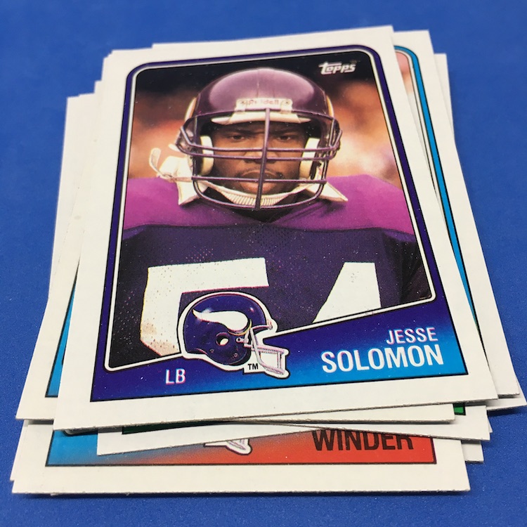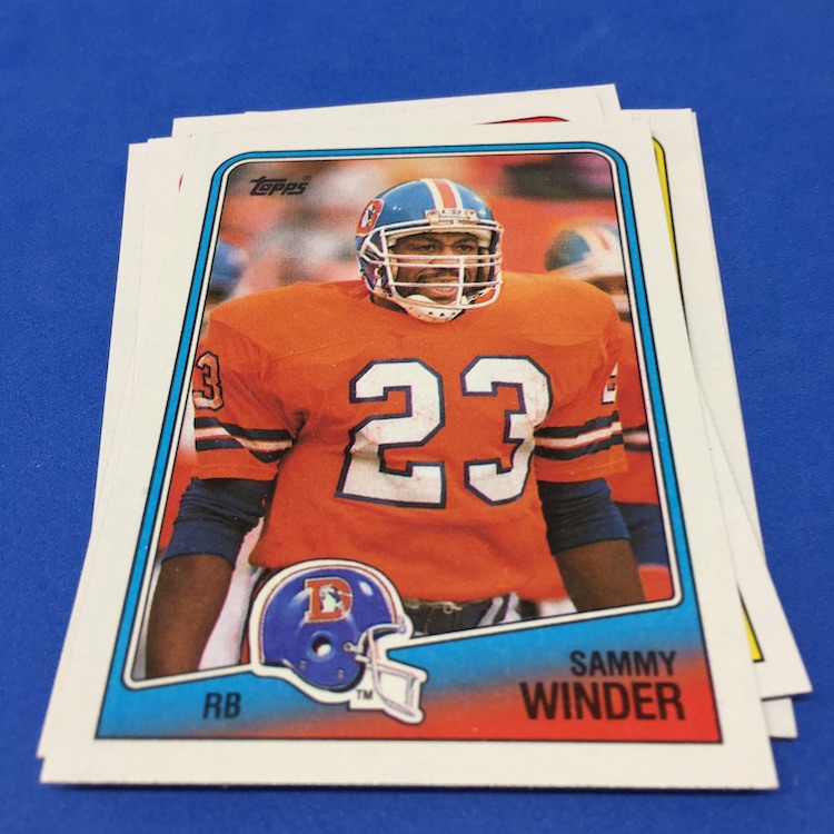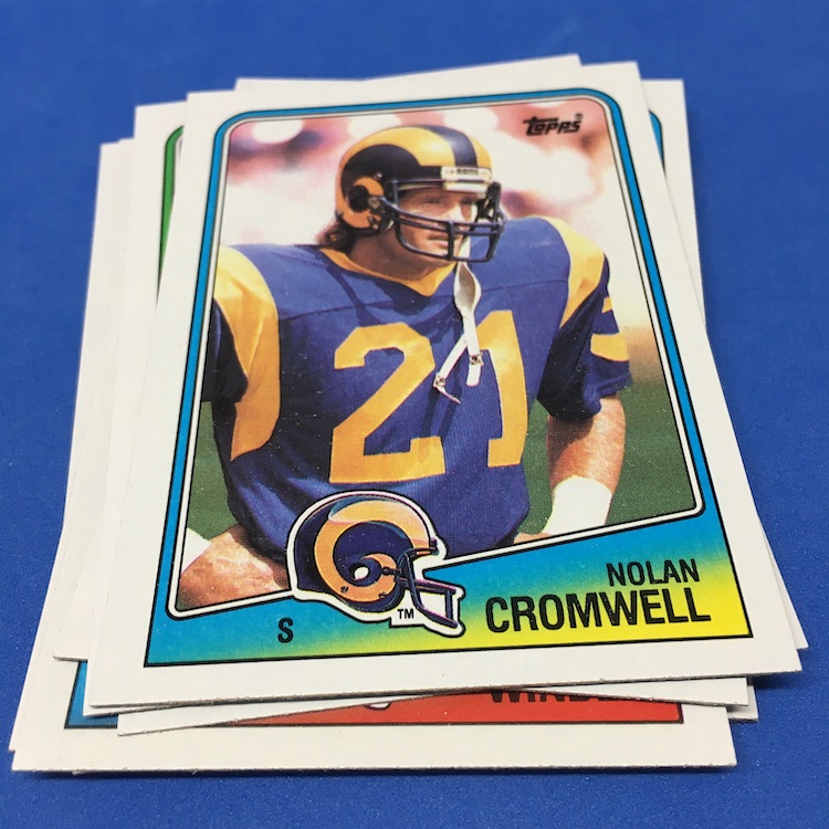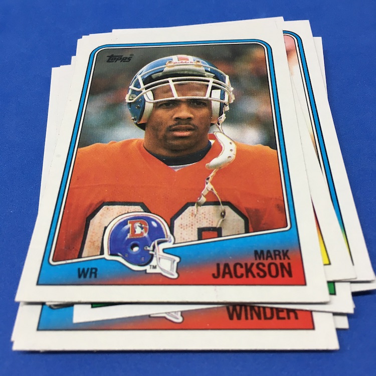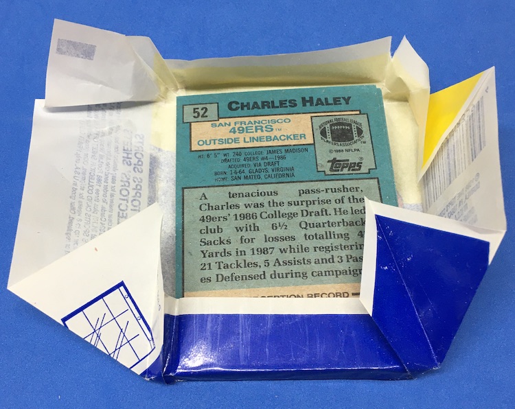 What's Buzz-worthy: This is arguably the last of the best Topps flagship NFL designs ever -- clean, classy, timeless and more modern than many from the company in all the years leading up to it and even more than some from the years after. It's, in my mind, a strong finale of the Topps era of the past as Pro Set and Score arrived the year after this to truly show how Topps was behind the times back then. Atop that, the 1989 Topps set was, well, a big downgrade in a multitude of ways from this one. This set is one of the better releases of the 1980s and it's largely due to one card -- the NFL Rookie Card of Bo Jackson. Sure, you'll find other RCs -- Tom Rathman, Pat Swilling, Brian Bosworth, Chris Doleman, Cornelius Bennett, Vinny Testaverde and Christian Okoye among others -- but none have the lasting star power of Vincent Edward Jackson. This wax isn't super-flashy -- and it's definitely not as good as the two years before it overall -- but it's becoming harder to find. After this release, the presses rolled pretty hard for a few years after the NFL card world evolved in 1989. This particular pack was rough with arguably the best card -- and it's nothing special -- on the back of the pack so it got a minor wax stain but not as bad as many like it. One reason why I think this design is a strong one? It's not been reproduced to death in years since -- but it really should have been. The Super Rookie subset adds just one little element to the design and it's a classic ... and even a #TBT-style set for baseball rookies using this one last year was a really good look. (Topps swapped the helmets for MLB teams logos ... still worked.) This pack was perhaps below-average, but I was nice today ... but packs like this will happen with a bigger set and not that many cards. Next time I dabble here or elsewhere I'll probably pick off a pair to increase my odds of finding more star power, though this wasn't a great at $5 a pack, either. Singles might be the simplest way to go with this one -- pick off who you like.