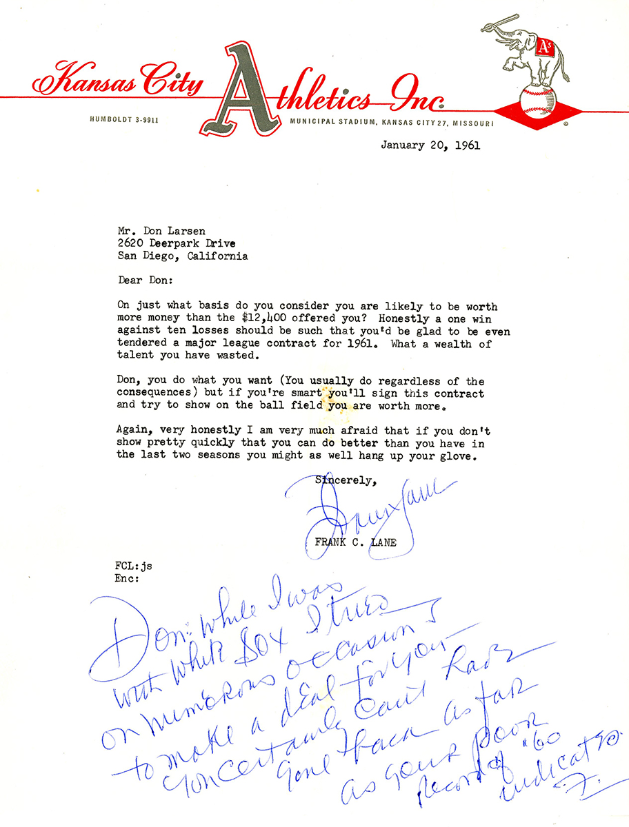 Some include some real talk -- like this letter to Larsen from former Kansas City Athletics General Manager Frank Lane.