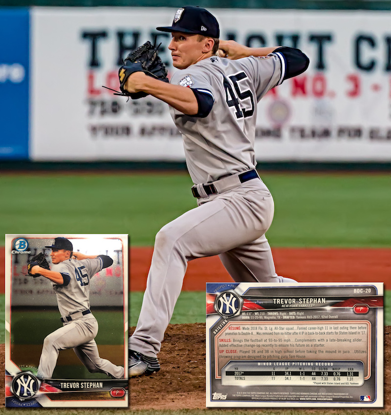 While New York Yankees prospect Trevor Stephan hasn't gotten there just yet, he does have a taste of big-league cardboard and he had some family help there, too. How? His dad, Bill, was the photographer for several of his baseball cards made so far showing him as a member of the Yankees organization.