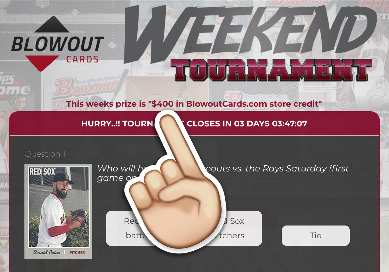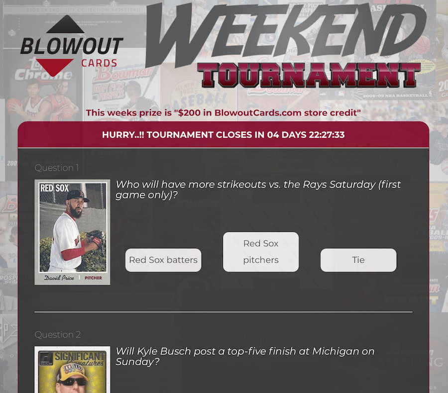 Blowout Cards' hot spot for your shot at free stuff -- store credit, boxes, memorabilia and other prizes -- is in its 19th week and the prize once again is $200 in Blowout store credit.