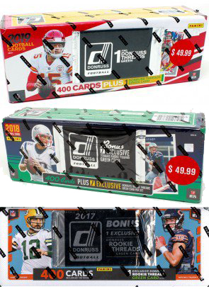 This week's prize once again is a trio of Donruss NFL factory sets -- 2017, 2018 and 2019 -- which have Rookie Cards for some of the league's biggest young stars inside such as Patrick Mahomes inside. It's worth the minute of your time to click and pick -- hit that link.