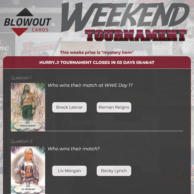 Did you get in on last week's action? Check the leaderboard and contact fish@blowoutcards.com to claim your prize if you're the winner.