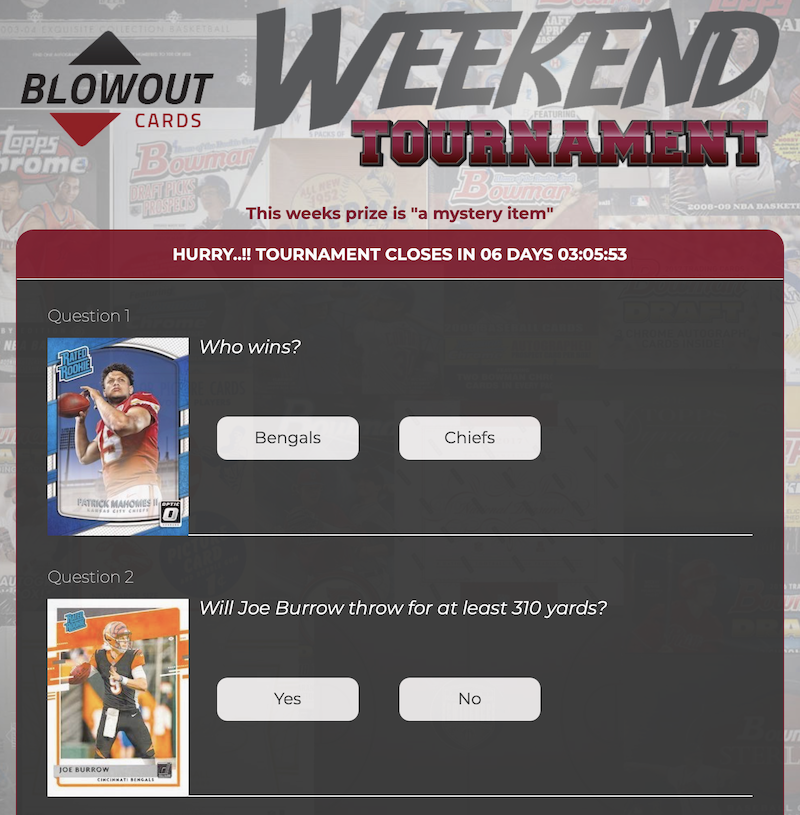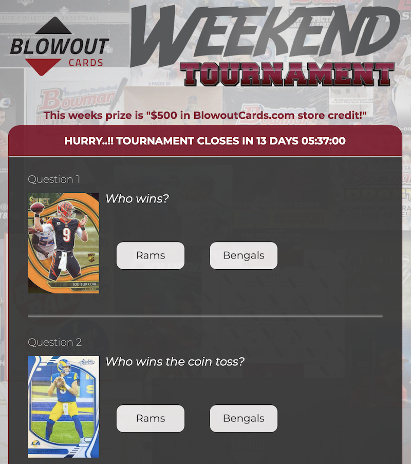 This week's prize is $500 in BlowoutCards.com store credit that can be yours if you take the minute to make 13 simple predictions below.