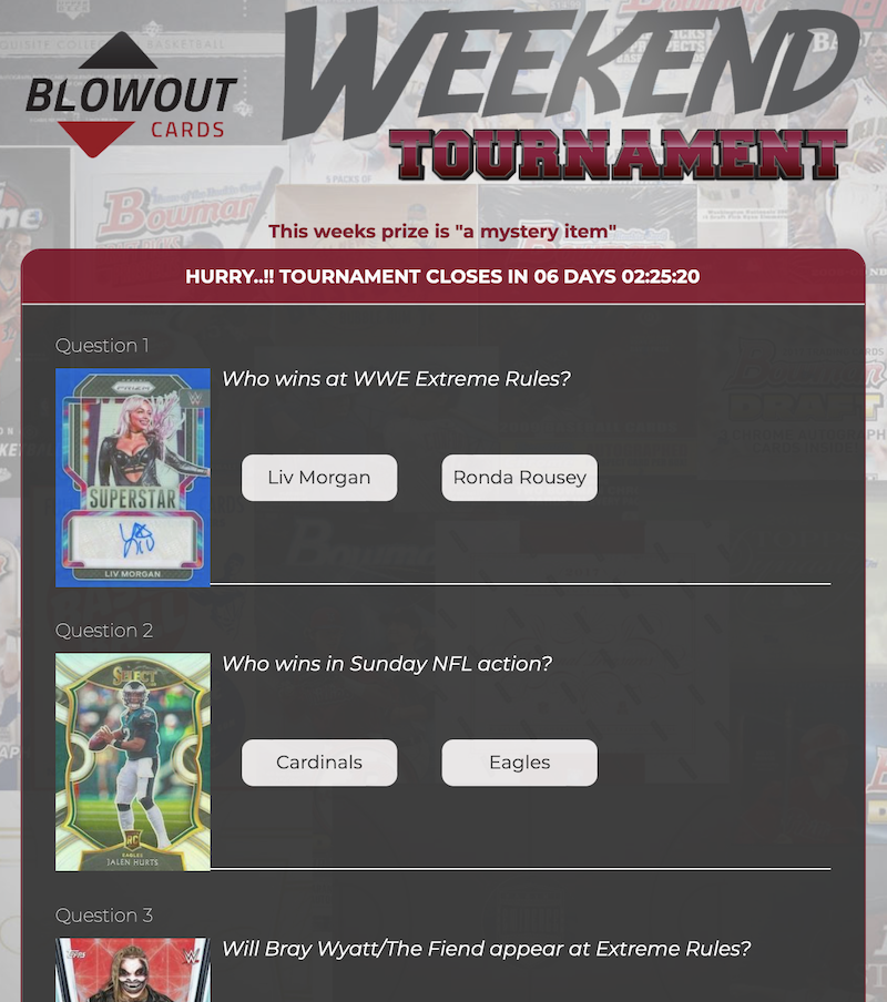 Did you get in on last week's action? Check the leaderboard and contact fish@blowoutcards.com to claim your prize if you're the winner.