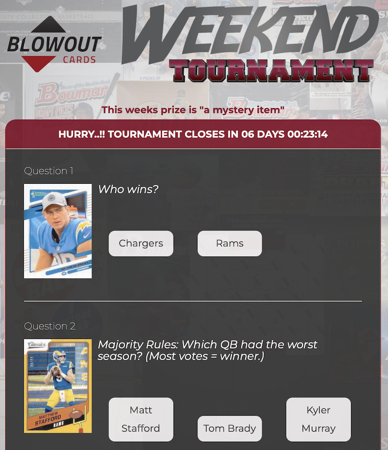 Did you get in on last week's action? Check the leaderboard and contact fish@blowoutcards.com to claim your prize if you're the winner.