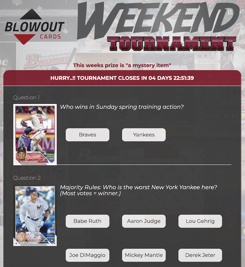Did you get in on last week's action? Check the leaderboard and contact fish@blowoutcards.com to claim your prize if you're the winner.