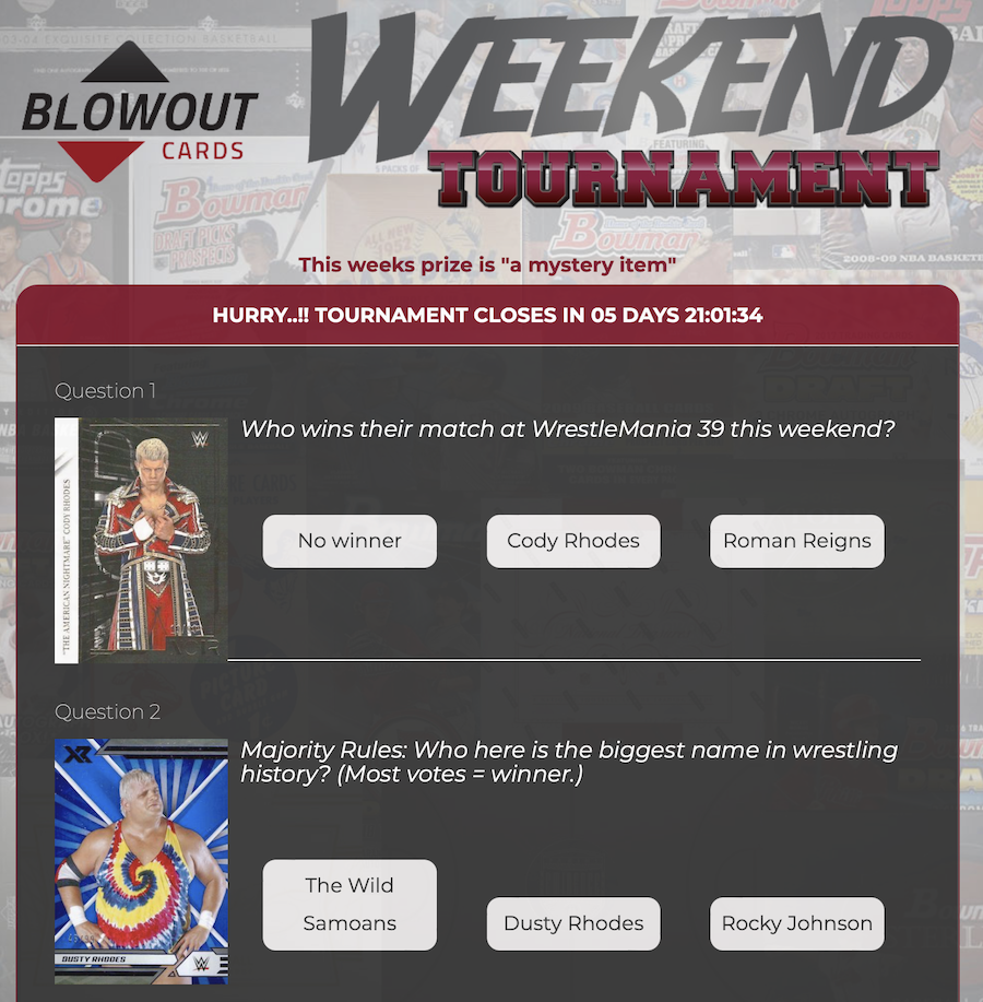 YourDozen.com is back for another week with free cardboard up for grabs to one lucky winner -- this time it's a mix of questions for WrestleMania Weekend.