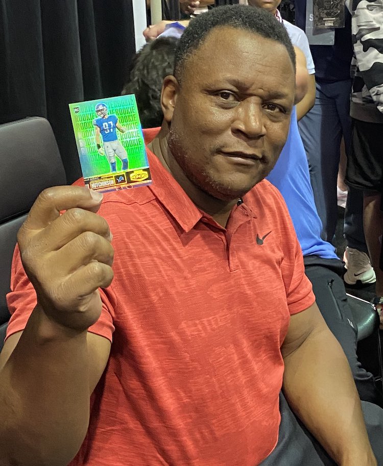 Via @PaniniAmerica ... Crazy in the Panini booth @nsccshow right now with ? @BarrySanders pulling some ? and that dude @aidanhutch97