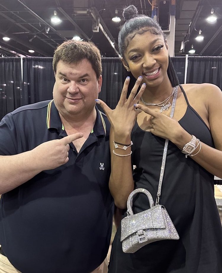 Via @Leaf_Cards ... @leafceo with Leaf exclusive athlete Angel Reese. An amazing day and we celebrated it with her fans.