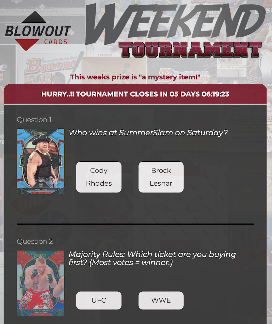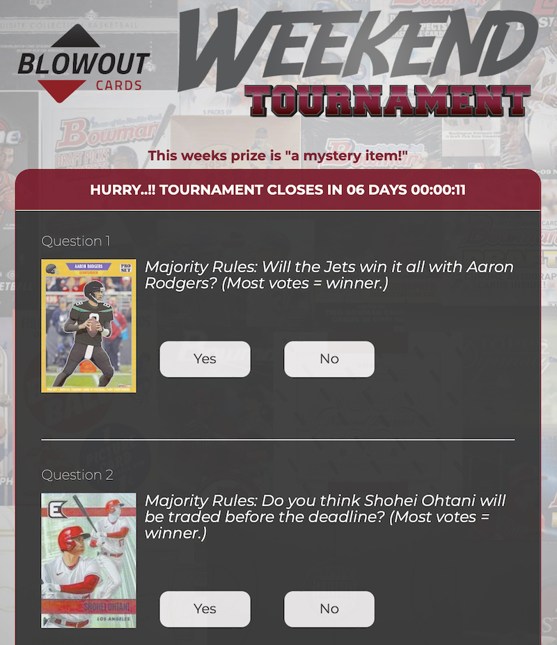 Did you get in on last week's action? Check the leaderboard and contact fish@blowoutcards.com to claim your prize if you're the winner.