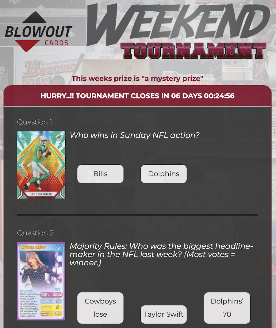 Did you get in on last week's action? Check the leaderboard and contact fish@blowoutcards.com to claim your prize if you're the winner.
