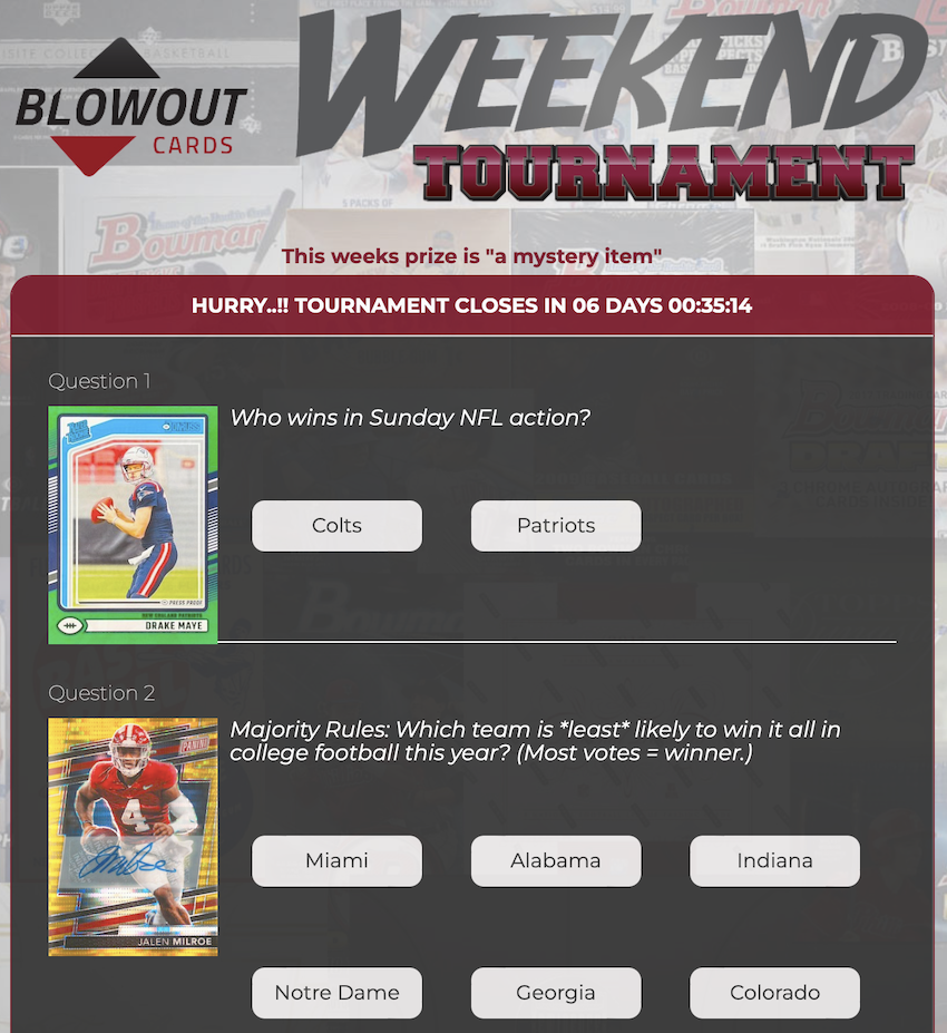 You should also keep an eye on the @BlowoutCards Twitter feed where there will be contests for sharing the posts with free stuff up for grabs.