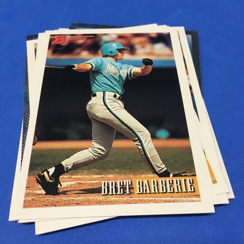 Mike Piazza, the 1993 National League Rookie of the Year, also got snowed in. Same thing for ESPN's Eduardo Perez and my two foils, Jason Bere and Marty Cordova. They were joined by a few more of these snowstorm "parallels" before the rest of the pack -- see it all below -- yielded a few cleaner notables, Gary Sheffield and Manny Ramirez, and then others who some might remember more than others. All in all, this was a pretty solid pack for one not including Jeter and considering the size of the set. (You get about three percent of the set in one of these packs and I'll let you do the math for landing any one specific card.)