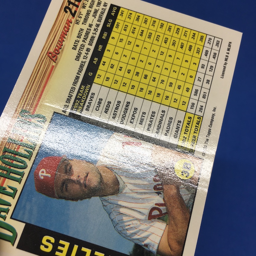 So ... why is this here? Well, you never know how any card will age over time, especially when different materials beyond basic cardboard and basic ink are used -- and if card companies do say they know they are lying. And it's not just gloss and ink -- the acids in the paper could break down over time and create problems.