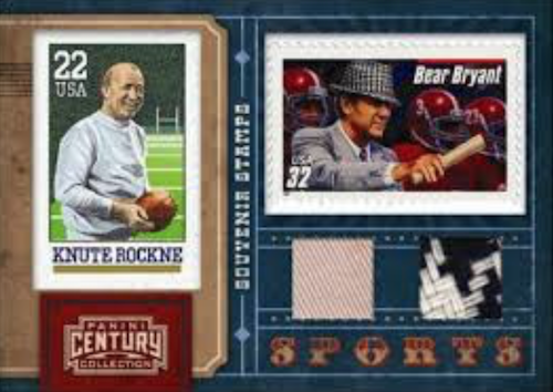 Bryant, who died less than a month after coaching his final game back in 1983, appears on a handful of memorabilia cards from Panini America, which cut up one of his famed Houndstooth check fedoras for cards in its 2010 Panini Century Collection release and more recently a 1/1 cut auto memorabilia in 2017 Panini Flawless Collegiate. His only certified autograph cards are cuts -- he has roughly 10 between a number of products made in the last decade between several companies. Nearly all of them are 1/1 creations.