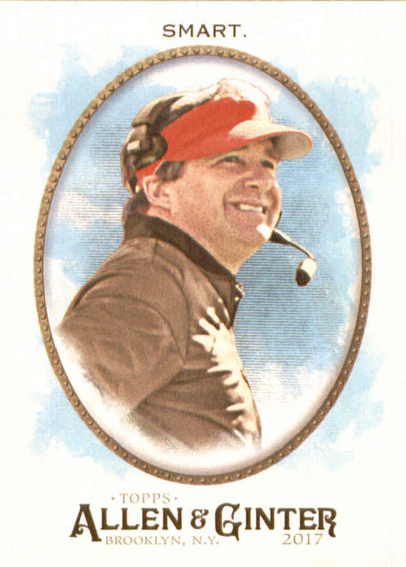 Swinney remains cardless in major releases, while Smart appears in last year's Allen & Ginter baseball card set from Topps but didn't appear on an autograph or memorabilia card, unlike Saban who signed for the release back in 2013.