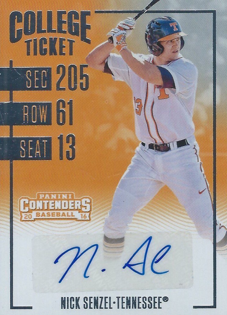 The cheapest Buy It Now autos for Senzel -- ones showing him in his Tennessee orange -- are around $30, while his cheapest MLB autos are around $40 and up right now on eBay. His cheapest Chrome autos, though, aren't found until you get into the $150 range and the graded rarer specimens are pushing up toward the $5,000 mark in most cases with one even higher than that right now.