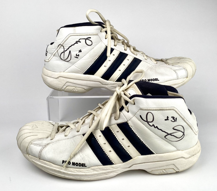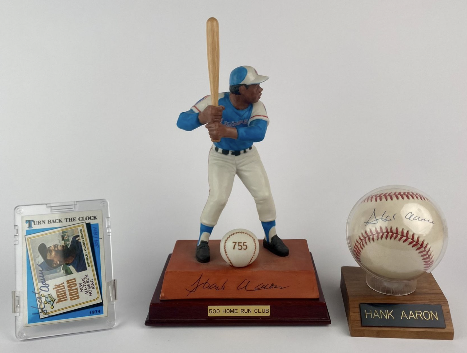 Among the notables? Autographs from Kobe Bryant, Mickey Mantle, Willie Mays, Michael Jordan, Mel Allen, Ernie Harwell and so many more. As one example, there are signed game-model bats from Ken Griffey Jr., Jose Canseco, Pete Rose, Carl Yastrzemski, Frank Robinson, Hank Aaron, Barry Bonds, Cecil Fielder, Will Clark, Ernie Banks and Stan Musial. (Some prime Score Board material there among many others.) From more recent years, there's even a pair of size-18 Darko Milicic Adidas basketball shoes. Some lots will pair similar items -- signed cards/baseballs/statues -- for example with Aaron, Mantle, Canseco, Banks, Mike Schmidt and George Brett being some of those.