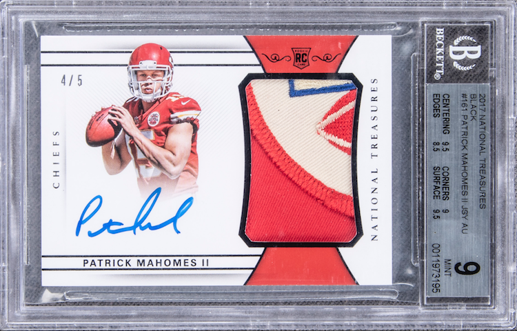 The Item: Patrick Mahomes 2017 Panini National Treasures Black #161 Rookie Patch Auto (/5) BGS 9-10