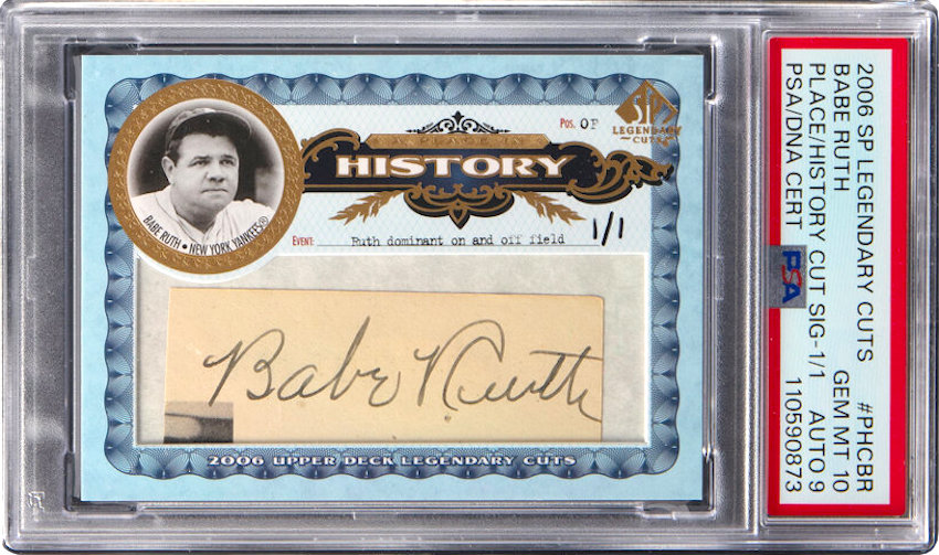 The Item: Babe Ruth 2006 UD SP Legendary Cuts A Place In History Cut Signatures (1/1) -- PSA 10