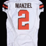 - Johnny Manziel Oct. 11, 2015, game-worn Cleveland Browns jersey. Current bid: $612