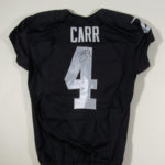 - Derek Carr autographed Oct. 11, 2015, game-worn Oakland Raiders jersey. Current bid: $1,650