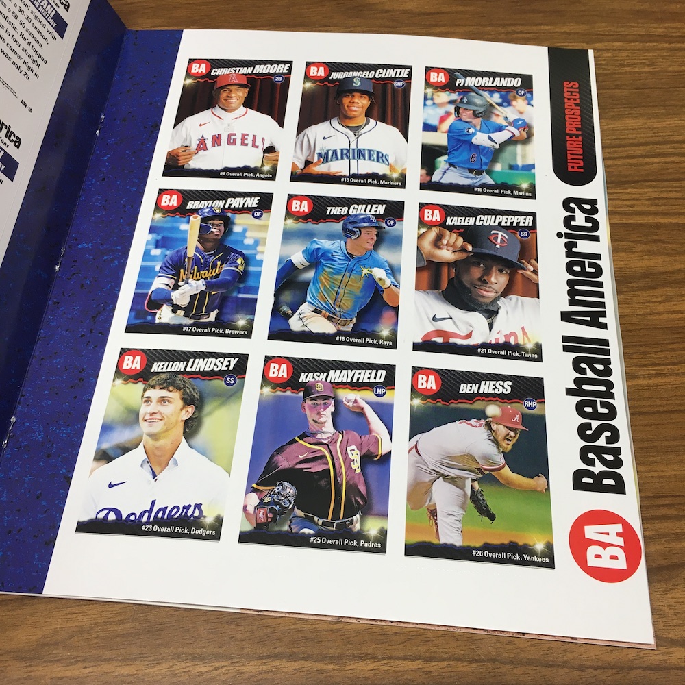 As you can see here, he's joined by Christian Moore (Angels), Jurrangelo Cijntje (Mariners), PJ Morlando (Marlins), Braylon Payne (Brewers), Theo Cullen (Rays), Kaelen Culpepper (Twins), Kellon Lindsey (Dodgers), Kash Mayfield (Padres), Ben Hess (Yankees), Dante Nori (Phillies), Walker Janek (Astros), Malcolm Moore (Rangers), Ryan Waldschmidt (Diamondbacks), Griff O'Ferrall (Orioles), Kyle DeBarge (Twins), Blake Burke (Brewers) and J.D. Dix (Diamondbacks).
