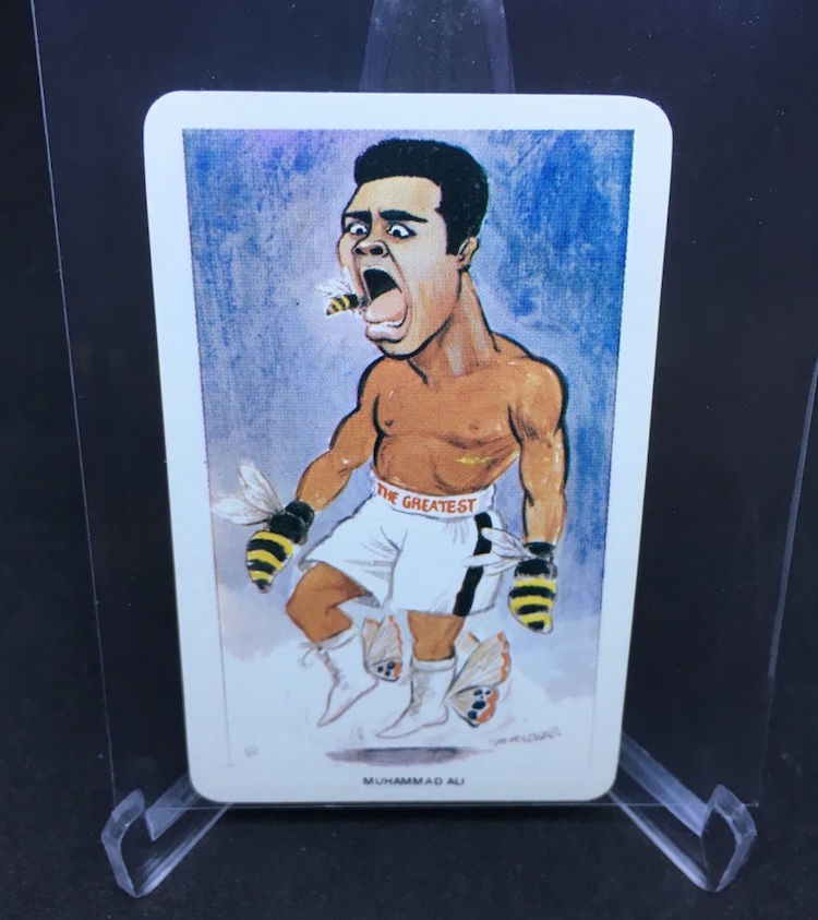 Why it’s Buzz-worthy: "Float like a butterfly, sting like a bee. The hands can't hit what the eyes can't see." That phrase of his is the basis for this caricature of Ali in a 48-card set made in England. They're not particularly scarce but they're also not something you see every day -- and that was enough for me to pick one off because I thought it was interesting. Others of note in this multi-sport set include Mario Andretti, James Hunt, George Best, Pele, Jack Nicklaus, Lee Trevino, Olga Korbut, Jimmy Connors, Bjorn Borg and Chris Evert. Boxing fans don't have a ton of cardboard options but Ali has more than anyone out there. You'll see him here again in the future.