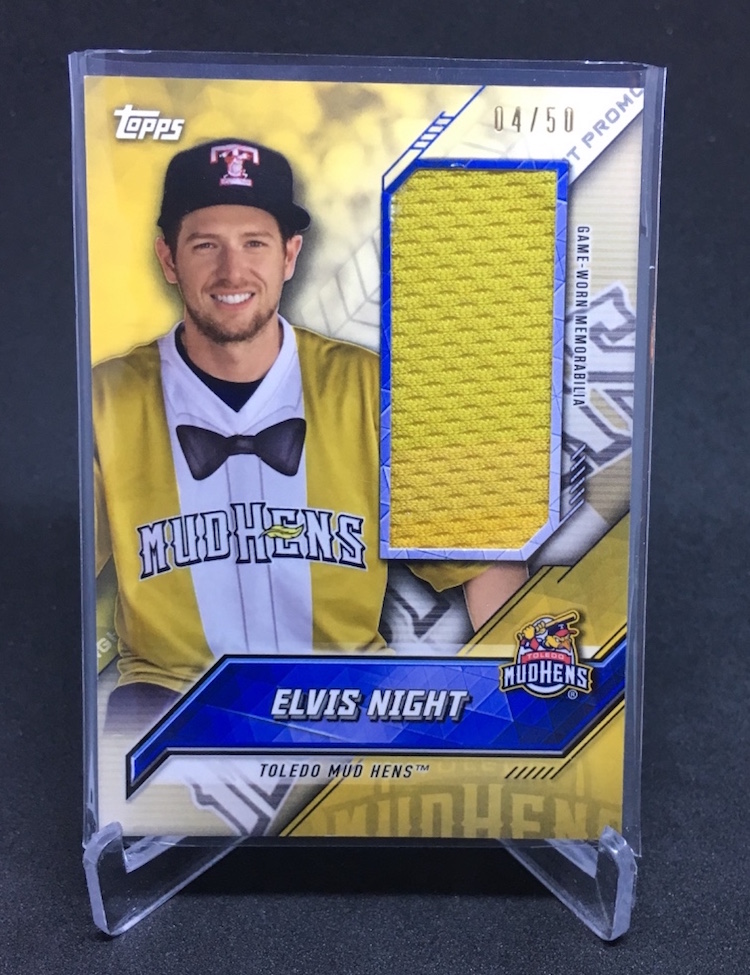 The Card: 2017 Topps Pro Debut Promo Night Uniform Relics Gold -- Elvis Night (/50)