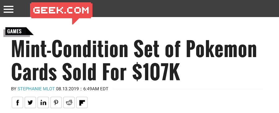 "Even more impressive is the fact that Pokémon remains popular today and just like Star Wars, is arguably more popular than ever with kids and adults taking part in the different games that the vast World of Pokémon offers. Some argue that it will become as important to modern collecting as the 1986-87 Fleer basketball set [the home of Michael Jordan's Rookie Card] or the 1909-11 T206 [tobacco cards, the home of the million-dollar Honus Wagner baseball card]."