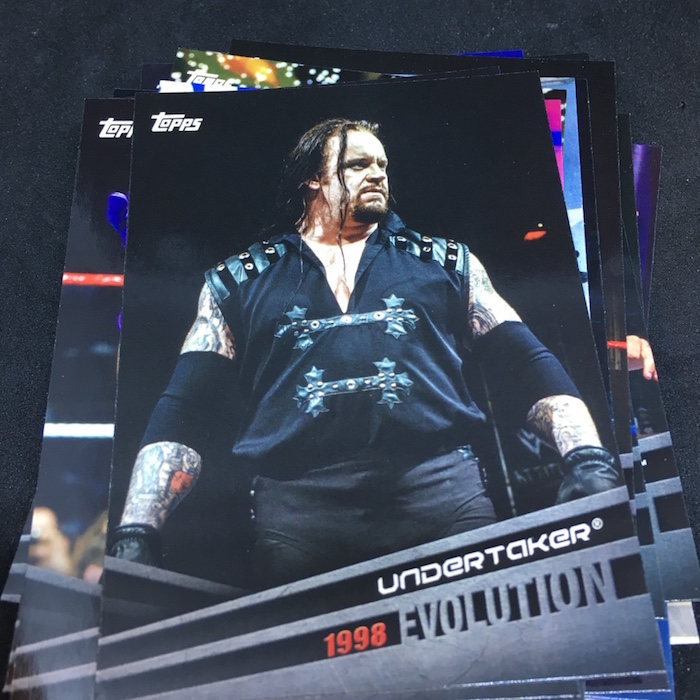 What's Buzz-worthy: The Relic here is one in 365 packs so this lot is a little better than it looks but ultimately about the same return as a blaster box for less than that price since these were bought in the big sale for less than $2 a pack. (Their original prices were roughly $5 apiece ... not the best format at the original price with the odds. That said, I busted one of these cases for the second series and landed several parallels and a handful of hits -- so they can deliver better than the wrapper says. Why does that matter? There are some key things to be found here, namely autographs and Undertaker is on the checklist along with a number of others like Charlotte Flair, Kairi Sane, Adam Cole (Bay Bay!), Asuka and Triple H. The second series of this one is better if you ask me, but this one also has a lot of the good touches and strong photos that you can find in the second. The only real drawback here is the Evolution insert volume -- six cards per pack is heavy, but it's an interesting set that takes you through the various iterations of several stars' careers. At the sale price now, these are a no-brainer with potential -- and statistically this one did well as the Blue parallels are one in 26 packs along with the Relic being tougher. There are also one-per-case photo variations, autographs, shirt Relics, auto Relics, medallions, kiss cards (Liv Morgan, Maryse, Peyton Royce, Kairi Sane and more) and other things potentially found here ... even printing plates.