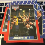 What's Buzz-worthy: This was a throw-in in a big wax lot Buzz found and these actually offered a fun surprise with their clean printing and crisp white stock which wasn't a given back in 1991. These cards are the only release for a competition TV show that ran weekly from 1989 to 1996 where it had amateur athletes squaring off against Gladiators in athletic events that were at times hokey but still oddly fun to watch -- a formula that's lived on to today in a few forms of filler television. Had some of these cards been more cleanly centered for the main character cards, there might be a surprise to be found in a future Making the Grade -- I'd bet very few of these have been graded despite the fact that they'd be fun talker piece you'd have if you could land one in top grade. With the packs being made of cellophane and being gum-free, there's no worry about damaged cards from those things -- so ripping into a box of this one might be a little more guilt-free compared to some stuff from the same era. These aren't as plentiful as some boxes from that timeframe, so it seems there's a little bit of interest in these -- at least when it comes to their asking prices. I didn't land a whole set here, but I might finish it out because this is a simple throwback set.