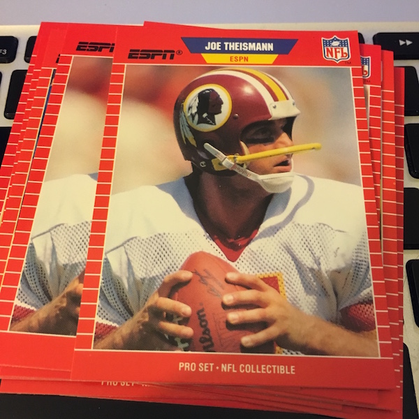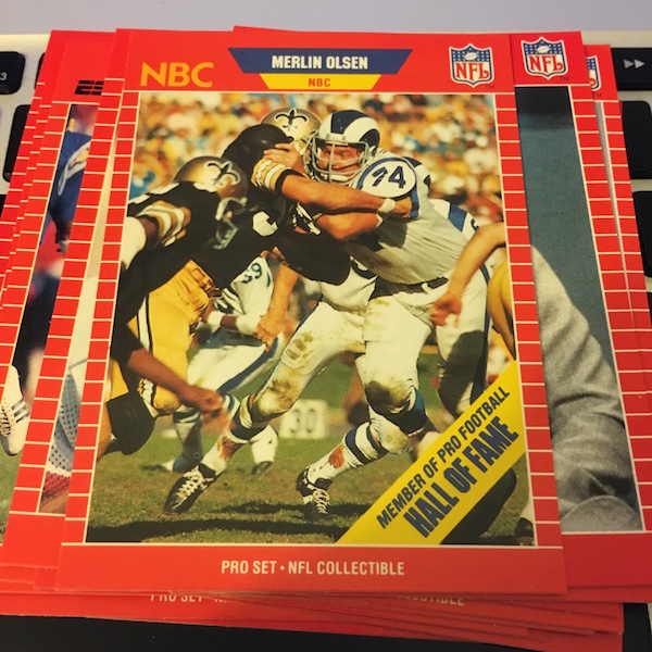 Announcers (36) – Notables include Joe Namath, Bob Costas, Dan Fouts, Terry Bradshaw, Dick Butkus, Hank Stram, O.J. Simpson, Merlin Olsen, Dan Dierdorf, Steve Sabol, Tom Jackson, John Saunders, Joe Theismann, Chris Berman (set not completed as there were many duplicates)
