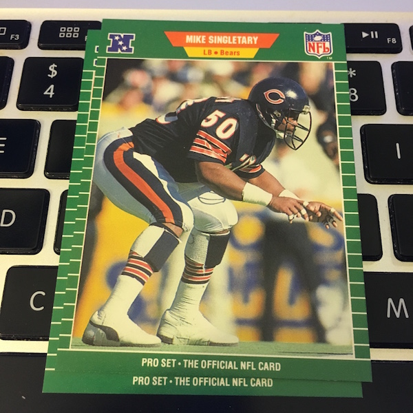 Notables on base cards – Barry Sanders (RC), Troy Aikman (RC), Derrick Thomas (RC), Reggie White, Tim Brown (RC), Bo Jackson, Michael Irvin (RC), Thurman Thomas (RC), Joe Montana, Mike Singletary, John Elway, Rodney Holman (error), Eric Metcalf (RC), Steve Atwater (RC), Don Beebe (RC), William Perry (Series II version), Eric Dickerson, Anthony Miller (RC), Nate Newton (RC), Cris Carter (RC), Howie Long, Don Shula (RC), Bruce Smith, Merril Hoge (RC), Steve Largent, Ickey Woods (RC), Brian Bosworth, Chuck Noll (RC; error), Rod Woodson (RC), Neil Smith (RC), Bernie Kosar, John Taylor (RC)