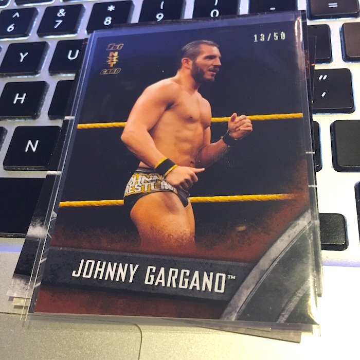 What's Buzz-worthy: This one is in the big sale at less than $15 a box and I actually pondered a run of about 8-10 boxes to chase a couple autos I still need, but I feared getting a streak of the more-toward-filler guys who aren't really wowing me on the checklist. That's not a shot, that's just a reality as this sis a set for the stars of WWE’s developmental promotion, NXT, and some just aren't that developed just yet character-wise for the big stage -- and some just aren't going to get there. The first box delivered two autos instead of one -- and it delivered two of the biggest names on the men's side in this set as well as a rarer parallel of a top name. (So, yeah, I should have tried more with them over-delivering.) ... This online-only release last year is one that might be overlooked as it has some solid names and people may not have seen the cards as often than other NXT releases, which had full hobby distribution in the two years since. There are challenges with this one as the autographs can roller marks/scuffs on the bottom/top edges from packaging because the card stock here is as skinny as it gets. There are a number of first-time autos here, though, as well as some of the biggest names from the past who are now on the WWE's top rosters, so it's one to consider, especially when on sale. Pulling rarer parallels aren't that tough, either, as Silver autos are one in eight, Gold autos are one in 19 and 1/1 Red autos are one in 184. I probably should have done more of these -- if they last, I might.