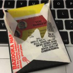 What's Buzz-worthy: This one seemed like a good idea because Little Buzz was all about watching this show back in the day -- and probably bought a pack or two of these -- but the number of car cards in this pack wasn't that thrilling. In fact, it was a bummer and the scene when opening wrapper above seems apropos. The characters and personalities of The A-Team made a simple show work and you got a glimpse of that here, but crashed cars -- yes, a staple of the show -- just don't make for entertaining cardboard. This pack had five car cards -- and a checklist. (I pity the fool opening that pack the next time.) This is a tiny set -- just 66 cards and 12 stickers -- and it's right in the Topps non-sport wheelhouse of the time. It just felt as flat as one of the tires on those wrecks based on this one pack. I should implement a new 12 in 12 rule to buy a couple packs to avoid duds on the old stuff. I'm sure this set is better than what I see here, but, then again, I haven't watched any old episodes of the TV show lately -- and I liked the recent movie reboot that bombed at the box office. Maybe it's just me!