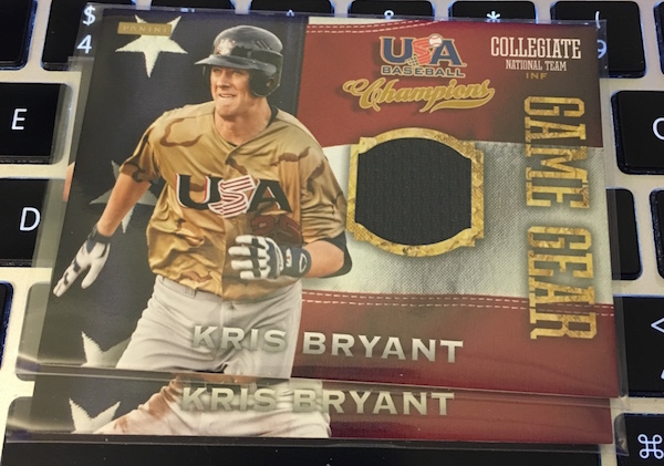 What's Buzz-worthy: The first two packs I opened in this one included Kris Bryant memorabilia cards -- what a start -- and it delivered pretty well after that with nothing but MLB players for five of the six hits and the one who isn't is a son of a Hall of Famer who's playing at Double-A in the Blue Jays organization. ... The base set of this one is loaded with past greats in USA Baseball history and is complete at 123 cards -- Nos. 107 and 124 were not found in this box as they do not exist -- and the Certified cards are meant to be a short-print capper to those with the then-current players there. This was the first USA release to be found in wax packs and it includes plenty of high-end finds such as bat knobs, flag patches and other premium creations that you'll find more easily in low-end USA sets than in other releases. This one isn't that pricey for wax or singles but you can find autographs for a number of big names, including Kris Bryant, Corey Seager, Mark McGwire, Roger Clemens and many others. At its current sale price, it's a solid rip -- and it's pretty good even when it's not dirt cheap.