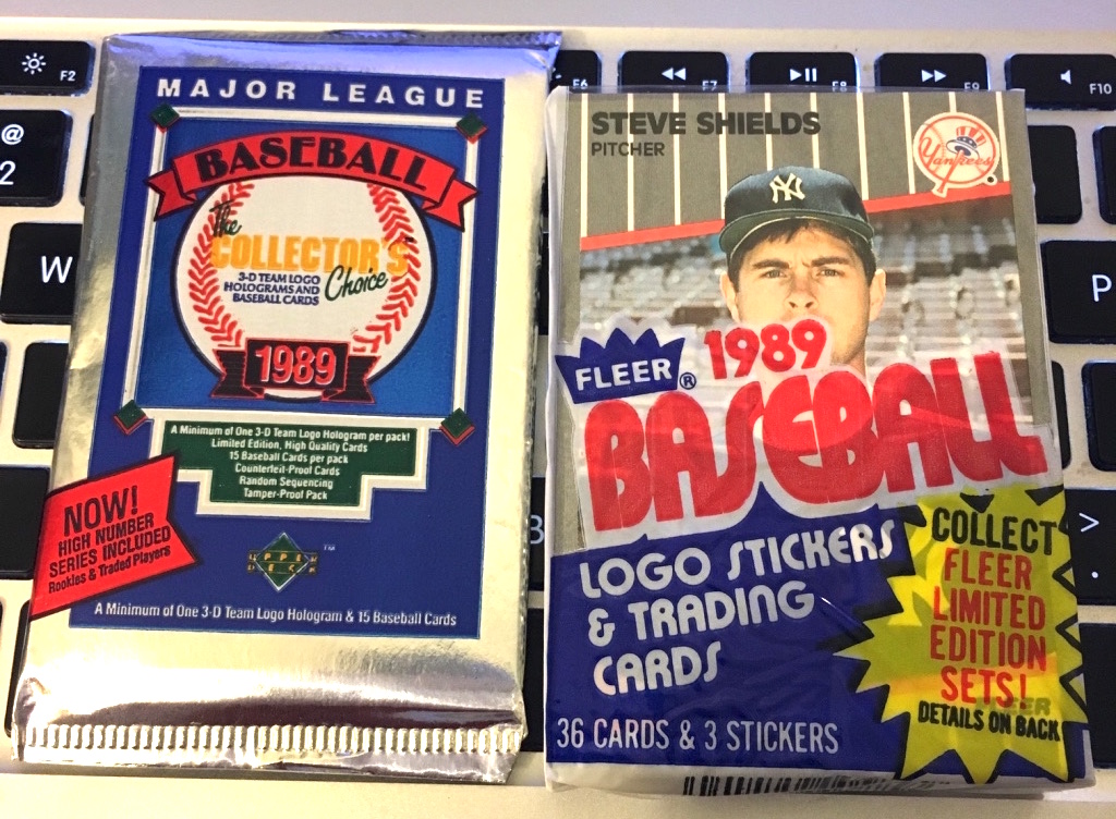 The boxes? We’ve got one safe pick — a 24-pack 1989 Fleer cello box from a sealed case — and a riskier and pricier pick — a 36-pack 1989 Upper Deck High Number Series box. The Fleer Griffey isn’t an expensive one, but it should make an appearance given the set size vs. the box size. Meanwhile, the Upper Deck card isn’t a sure thing from a high-number box but it can be done. (High boxes are also roughly half the price of standard boxes … so that’s why Buzz went this way.)