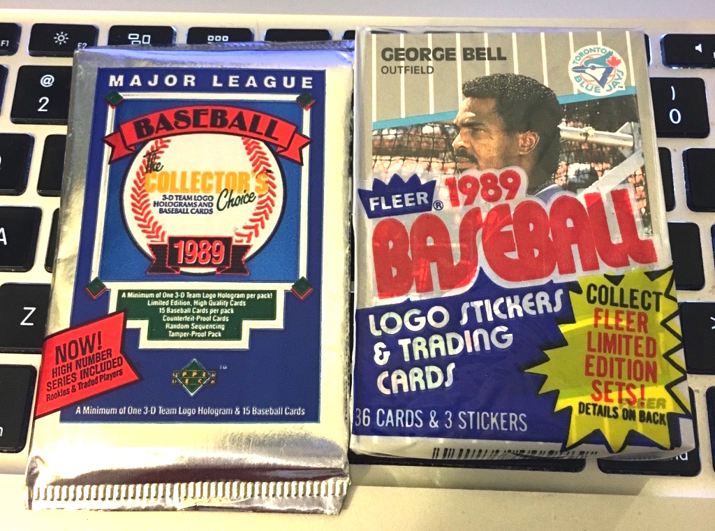 The boxes? We’ve got one safe pick — a 24-pack 1989 Fleer cello box from a sealed case — and a riskier and pricier pick — a 36-pack 1989 Upper Deck High Number Series box. The Fleer Griffey isn’t an expensive one, but it should make an appearance given the set size vs. the box size. Meanwhile, the Upper Deck card isn’t a sure thing from a high-number box but it can be done. (High boxes are also roughly half the price of standard boxes … so that’s why Buzz went this way.)