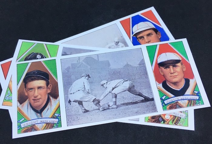 T202 Reprints (5) – Christy Mathewson & Arthur Devlin, Frank Chance & Joe Tinker, Walter Johnson & Jack Knight, Ty Cobb & Charles O'Leary, Tris Speaker & Joe Wood