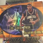 What's Buzz-worthy: I'll admit I didn't even know this one existed (busy in school at the time and not looking for basketball hobby boxes) when I recently stumbled upon it for not much more than a blaster box despite there being three autos guaranteed inside along with a signed item (albeit possibly a 19-year-old expired redemption). When you pop the lid here, you see a stack of packs surrounded by Styrofoam and then between that and a second layer is where a signed photo likely resides. This one included a not-so-flashy photo of a guy who went in the second round but did manage to get limited time in the league for nearly a decade with seven teams. The product is simple -- a 45-card set, a 45-card parallel set, a few inserts and the autos. My ink here definitely could have been worse as a Baron Davis auto is good enough to get an A grade out of me. Other autos possible on cards here include Francis, Szczerbiak, Brand, Odom, Hamilton, Artest and a ton of other guys not as remembered. The only thing I didn't pull here is a gold-foil auto -- the rest of what you see here represents the entire lineup. One other possibility? Hot Boxes with five signed memorabilia pieces instead of just one. (Items via redemption included jerseys, basketballs, mini balls and photos.) All in all, I could have done worse here but the price was right. At its original price these could be rough ... at least these days. Prices on single autos here are generally pretty cheap for even the big pulls here so the box price is about right or could even be seen as a tad risky. If I found another, though, I'd probably rip it.