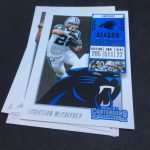 Notables on base cards: Tom Brady, Julio Jones, Derrick Henry, Aaron Donald, Mitchell Trubisky, JuJu Smith-Schuster, Christian McCaffrey, Matthew Stafford, Cam Newton, Deshaun Watson, Michael Thomas, Derek Carr, Drew Brees, Jimmy Garoppolo, Larry Fitzgerald, Adam Thielen, Russell Wilson, Matt Ryan, Dak Prescott, Jameis Winston, J.J. Watt, Jared Goff, Eli Manning, Ezekiel Elliott, Le'Veon Bell, Andrew Luck