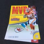 What's Buzz-worthy: My first one of these was an A+ box with a rare parallel auto but this one was a little more back to reality -- but with a really solid run of insert cards to help things out ... a little. ... As said last time, more packs, more inserts but no guaranteed hit -- but autographs one in every five boxes. That's the trade-off here in these made-for-Fanatics blaster boxes that you can get at the link above -- stuff Buzz will admit not even knowing existed until recently. There are also two Ruby parallels of insert cards to be found in these boxes, upping the insert volume here to nearly (but not quite) three times as much as a standard blaster. I like that but it still needs more as the rest of the box is solely base cards here -- which will seem even rougher if you don't land a hit like this box. Since this brand is historically all about chasing autos, there is plenty of the inserts to go around (especially a year later) out there for sale, but if you land a key name from a good rookie crop here on a Ruby parallel there could be some surprises. There aren't a whole lot of examples on eBay completeds, but a Mahomes MVP Contenders sold for $25 in July and a Team Quad for the Giants went for $13. My Ruby cards here this time hit a sweet spot for me with a new guy and a legend -- stronger than my last box -- but there was not much else here beyond inserts. ... The standard blasters are dry but safe with a memorabilia card (or auto in some instances) every time but for not much more these give you a lot more upside with some luck. With the notable rookies in this one, it's worth a look -- as long as you can handle boxes like this one without an auto.