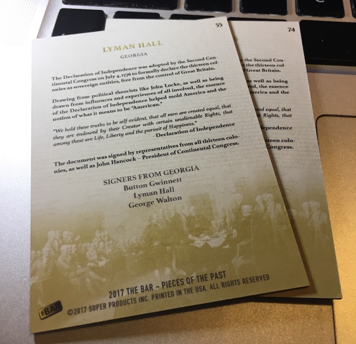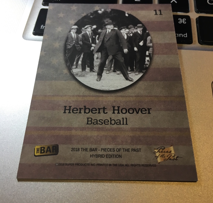 What's Buzz-worthy: This one is a little confusing as it's a newer release, but some of the inclusions here could have been found in earlier ones. The base cards? Those in this box are from the first series from 2017 and I'll admit I couldn't tell you a thing about either of those Declaration of Independence signers. One thing that is new here are the Presidents in Sports cards, and I landed a Herbert Hoover (baseball) while others in that set show Richard Nixon (bowling), Gerald Ford (football) and JFK (football) to name a few. It's a simple inclusion that should be found elsewhere in the card world when companies look to the past and pastimes. ... Boxes of this one note that they should have a Stamp On Our Past card (not here), a Pieces of The Past Relic (two here, one noted as from a previous edition) and an In The News Relic. The stamp cards use past stamps, something different that visually add some variety but not what I'm seeking. I prefer the possibilities of the Pieces of The Past Relics, which in previous releases were swatches from autographed documents. Here, I'm not sure whether it's that or whether they are from something else but I got two of them. Both cards noted here are noted as "piece of relic from" but I couldn't find the associated items on the company's site to see what they were. The Buffett got a bit of a chuckle out of me as it looks like Buffett used some lined notebook paper for a note or something ... and it's a comically tiny swatch here at that. ( A modest swatch considering he's like third on the richest people in the world list.) The final hit is one of the news clippings and it's of a definite not-modern person and is stated to be a piece of a newspaper from 1807. The first Pieces of The Past release was in mini-envelope packs with a hit per box, while the second release I opened included a larger volume of base cards and a hit (not in packs). This one puts more emphasis on the hits with lesser base presence. It's evolved and changed and, for affordable novelty, this is a brand that can pique my interest. A nice swatch can get you some cash back here if the boxes are cheap enough and this one was probably a break-even box if I were a seller. I figured I'd see what surprises might be in store here since I hadn't tried this series ... and I got Buffett-ed.