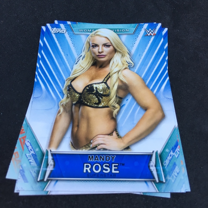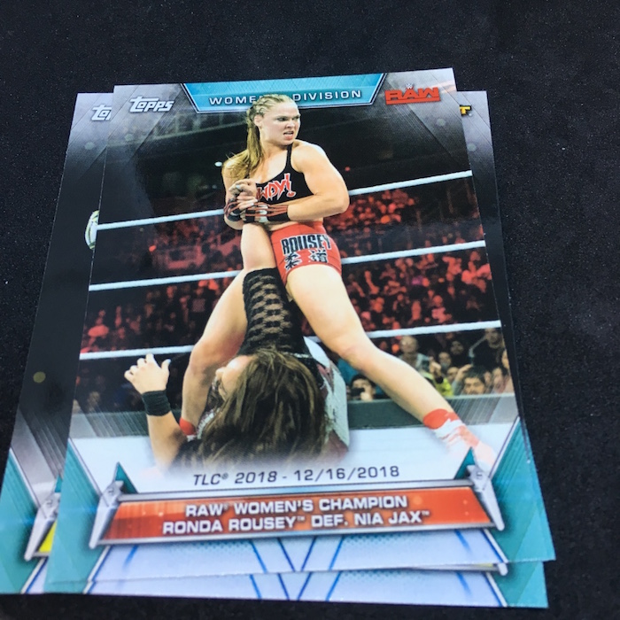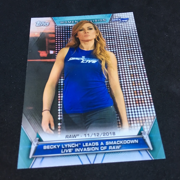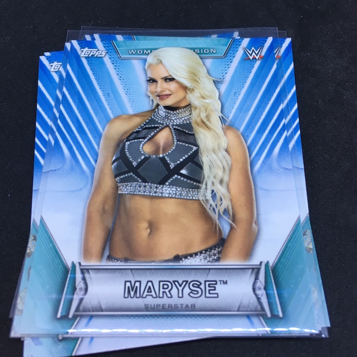 Notables on base cards: Becky Lynch, Bayley, Nia Jax, Beth Phoenix, Mickie James, Elizabeth, Sherri Martel, Shayna Baszler, Ember Moon, Asuka, Billie Kay, Lita, Candice LeRae, Mandy Rose, Ruby Riott, Liv Morgan, Sasha Banks, Carmella, Mia Yim, Ronda Rousey, Alexa Bliss, Maryse, Paige, Trish Stratus, Stephanie McMahon, Ronda Rousey, Peyton Royce, Lita, Zelina Vega