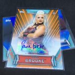 What's Buzz-worthy: My second box of this one delivered pretty well again with parallels -- an auto that's one in 304 packs, a manufactured Relic that's one in 1,225 and a standard parallel that's one in 219. It's still not the flashiest box but that gets it an A+ grade just based on paper (the odds). There has been chatter on the forums that these hobby boxes are overloaded with parallel hits and that may be the case as both of mine delivered very well. Generally speaking, this one feels like the strongest of the standard (not high-end) WWE sets this year with a design that's not too complicated or overwhelming and with a number of debuts here on both standard cards and ink while only focusing on the WWE's female stars. Despite getting a good box, this one still feels like a release that needs one or two more insert types per box and more parallels to really amp up the variety. ... As said before, the stock here is super-thin like previous years and that might matter to some of you out there wanting to get the first NXT (rookie) cards slabbed from this one. (I want to on a couple but the paper stock has done me no favors on what I have pulled.) You will encounter slight damage right out of packs here and there. ... These hobby boxes guarantee you an auto every time and another hit -- so that is the safest way to go with this release.