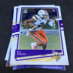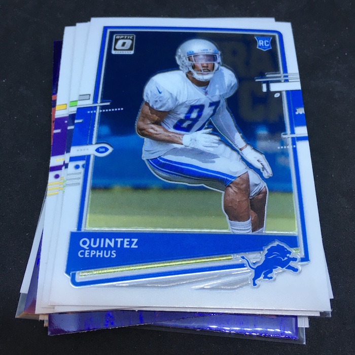 What's Buzz-worthy: My first one of these delivered with a couple of notable rookie WRs on parallels while this one, well, it delivered in the same precise volumes but without a top name in the mix if you ask me. That past box (Jeudy and Lamb highlights) got an A but this one pretty much feels like an average one that perhaps could have some future potential with the rookies. Walmart boxes are the home of Purple Shock (Target has Pink) which isn't my favorite color here ... but Purple color is better than no color at all. I prefer the blasters with hits -- those have been a staple for me since 2017 but they may not be arriving as the megas are a hit per this year. Tweaks to formulas are likely to be expected post-COVID and with so many just clearing shelves no matter what is in them. ... The rookie crop may not have scorched as much as was (unreasonably) expected this past year, but there is still a boatload of potential ... remember That Mahomes Guy didn't play much as a rookie. Optic (and Donruss) has been a go-to brand for me for basic football collecting in recent years and it will be hard to not go there more ... if I can.