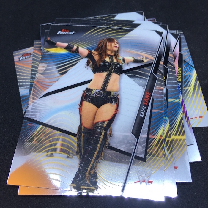 Notables on base cards – Edge, Finn Balor, Carmella, Mandy Rose, Lana, Lacey Evans, Sasha Banks, Zelina Vega, Shinsuke Nakamura, Kacy Catanzaro, Chelsea Green, Kairi Sane, A.J. Styles, Johnny Gargano, Ricochet, Seth Rollins, Kofi Kingston
