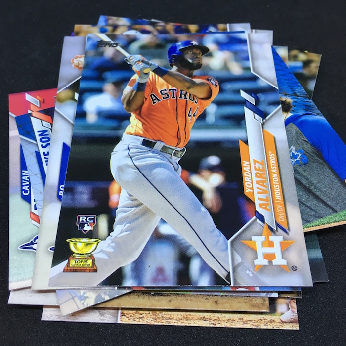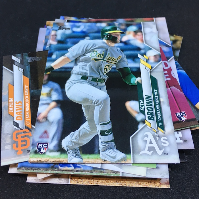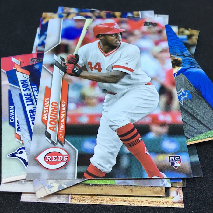 Rookie Cards (48) – Notables include Aristides Aquino, Bo Bichette, Yordan Alvarez, Dustin May, Nico Hoerner, Gavin Lux, Nick Solar, Jesus Luzardo, Jaylin Davis, Seth Brown