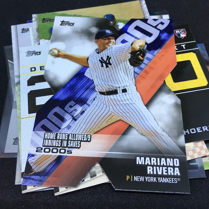 What's Buzz-worthy: Another strong box for this one shouldn't be a surprise as the loaded rookie crop will deliver well often here and that can always translate to those guys making appearances in parallels. The inserts are also good volume here and give a strong mix of stuff that I pretty much expect in releases today -- they add fun, nostalgia and value beyond the financial with a history lesson within a set. As I said before, this year's edition of the hobby's flagship product isn't perfect -- it could definitely use a lot more color -- but its overall feel is one that's not the traditional and the norm and that helps propel it to an A mark in my book. (I'd rather it swing big and come up short of the HR than do the predictable.) ... The photos are a clean full bleed here -- a plus -- but that does affect the colorful feel within the design. That all works on a really good photo and there are many. (Some don't work as well, too.) One big drawback? The Gold parallels really do not stand out from the pack this year -- the color is limited to the area on the outside edge of the nameplate graphic. The overall feel of the basic cards is solid and modern ... they just feel like they needed some secondary striping/framing element to add a bold bit of color. (The design should look pretty sweet when the area is colored in for Chrome Refractors.) ... One big plus this year over last year is the Rookie Card crop -- there are some key names in here, including the reigning American League Rookie of the Year, Yordan Alvarez, as well as Aristides Aquino, Bo Bichette and a few others who had moments last year. My Rivera card here is a standard SP (one in 43 packs) and you can see the SP gallery here, but this box was a big winner from the second I opened the box-topper pack with that Trout.